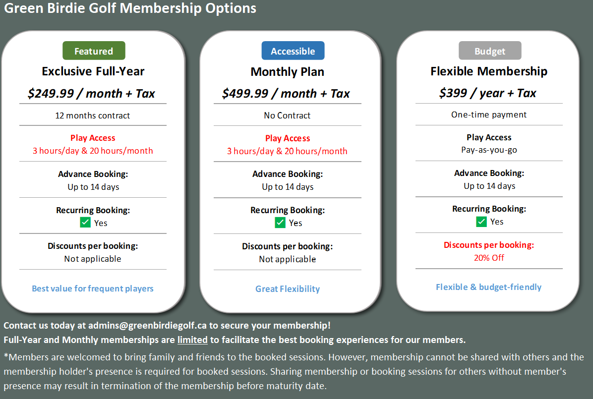 Gift Cards are available by contacting admins@greenbirdiegolf.ca